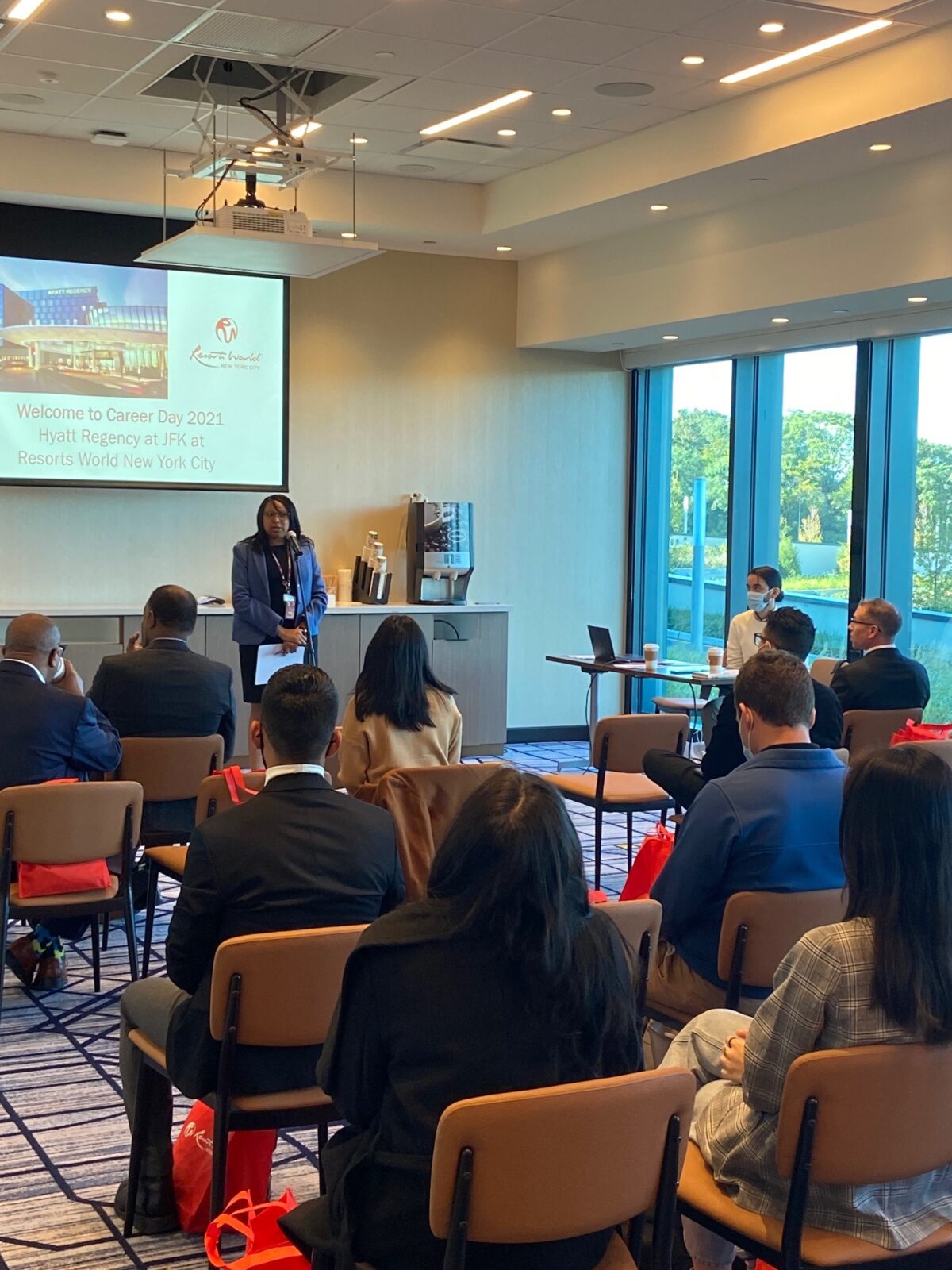 Resorts World New York City hosted its annual College Career Day event at the new Hyatt Regency JFK Airport. Over 50 students from local colleges and universities attended and listened to RW executives share their career journeys and experiences within the hospitality and gaming industries. Students were also given a tour of the newly expanded Resorts World New York City property.