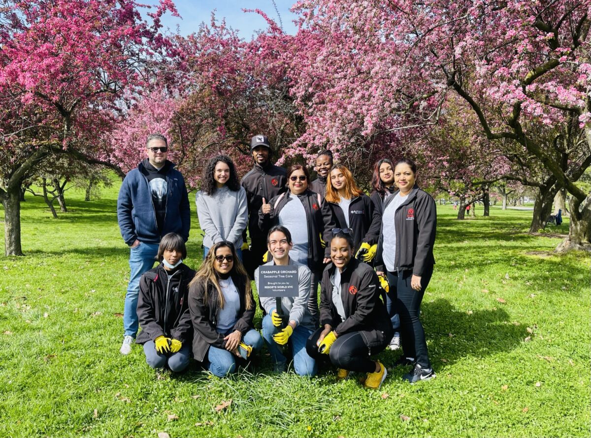 To honor Earth & Arbor Day, Resorts World New York City adopted Queens Botanical Garden’s, Crabapple Orchard. The orchard was in need of care and our valiant employees came to the rescue! They spent the day removing weeds and mulching so the crabapple trees can continue to blossom into the spring.