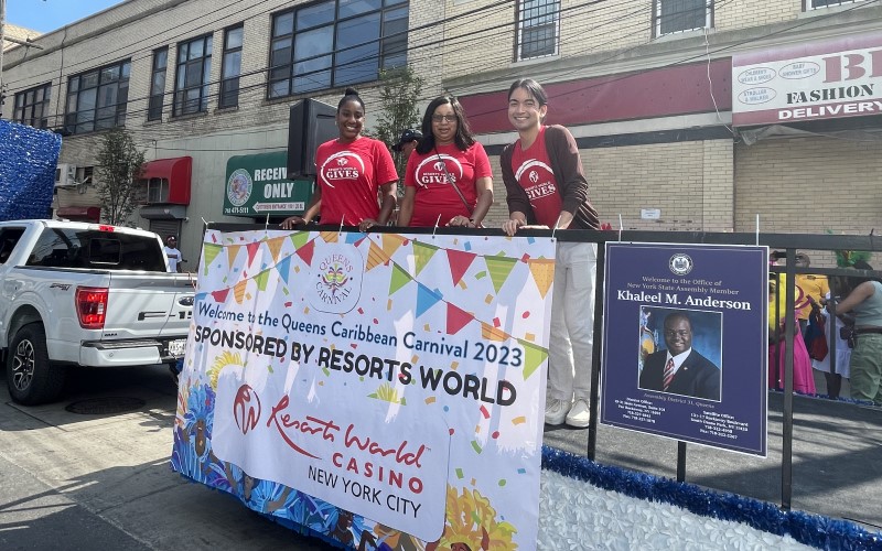 Resorts World New York City proudly sponsored the Queens Caribbean Carnival held in Far Rockaway. The Resorts World Gives team shared a float with AM Khaleel Anderson. While marching down the road to the sounds of Caribbean music the team distributed Resorts World reusable water bottles to the parade attendees. The carnival consisted of talented performers, exquisite vendors and concluded at O’Donahue Park.