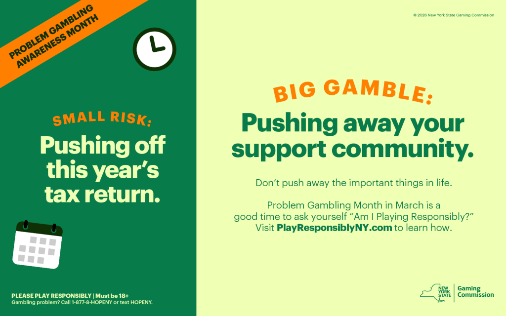 There are many gambling opportunities in New York State: Casinos, Lottery games, bingo, pari-mutuel wagering, sports betting and more. What most people don’t realize is that gambling behaviors can lead to significant negative consequences and become an addiction.